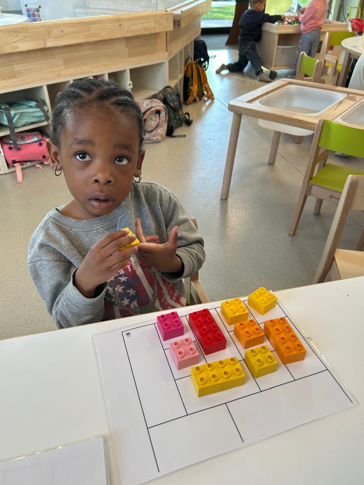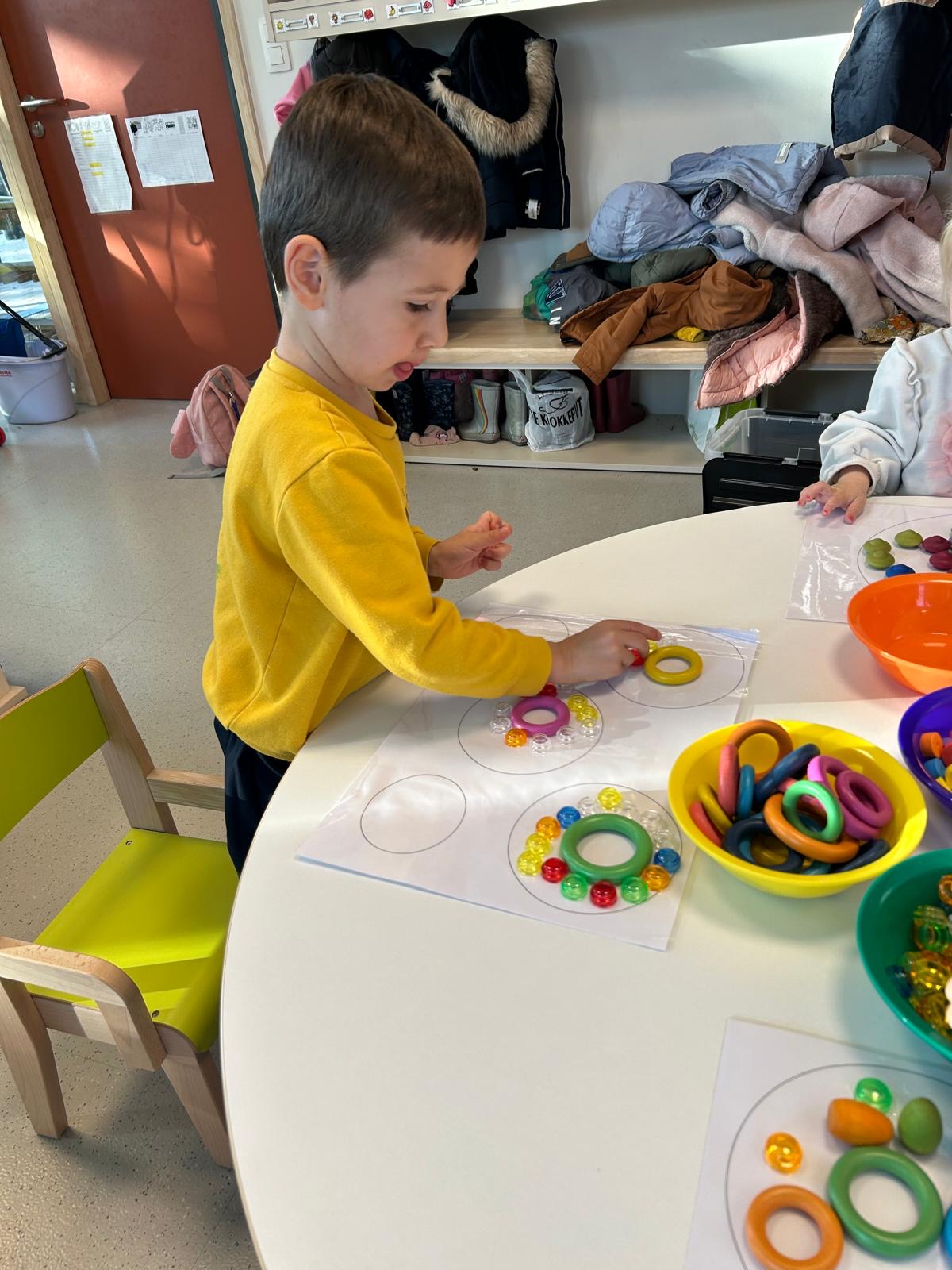 Daarnaast maakten de kinderen kennis met een matrix, waarbij ze potjes, stoelen en bedjes bij de juiste beer moesten plaatsen. Zo stimuleerden we ook het logisch denken en het ruimtelijk inzicht.