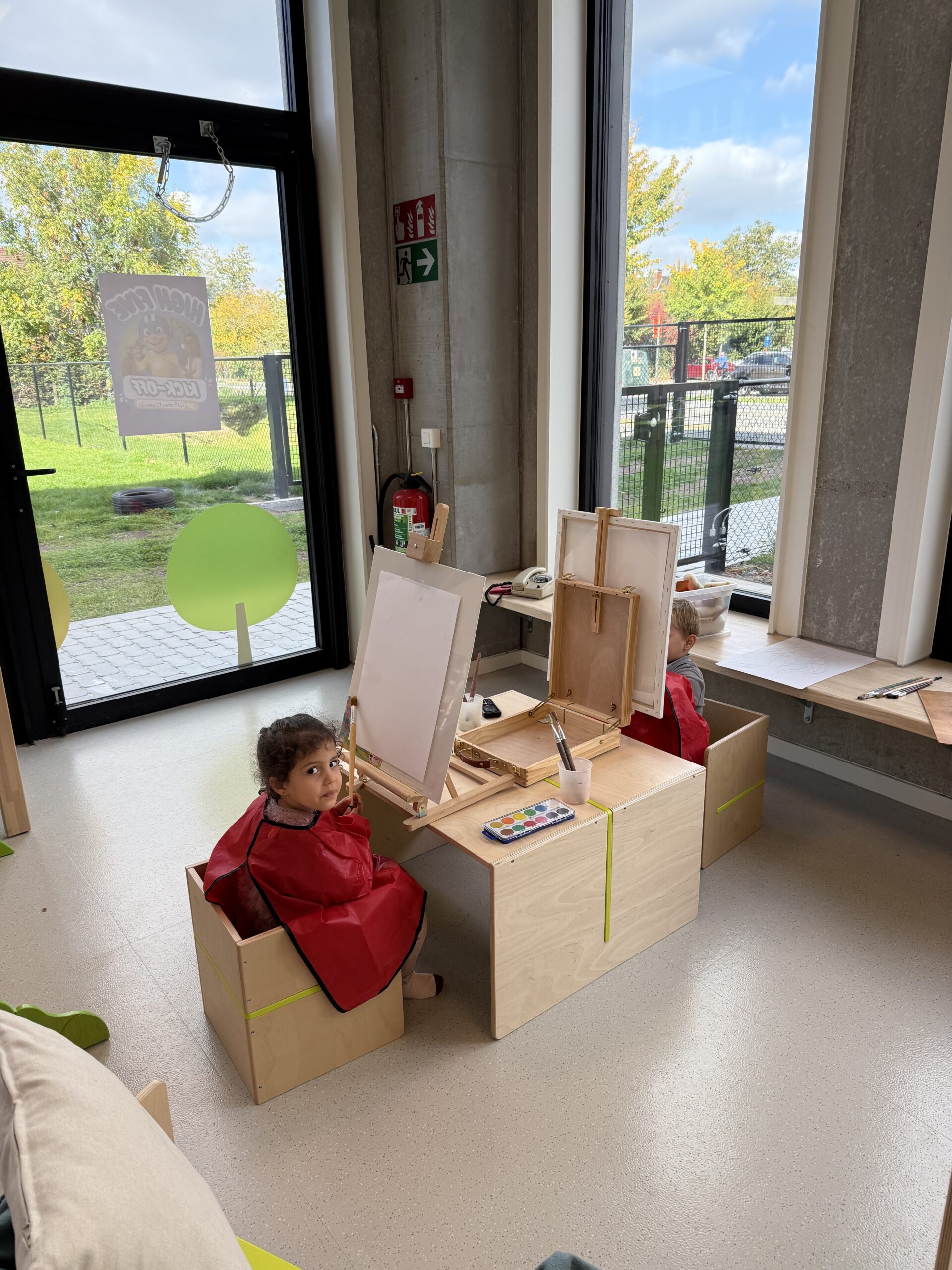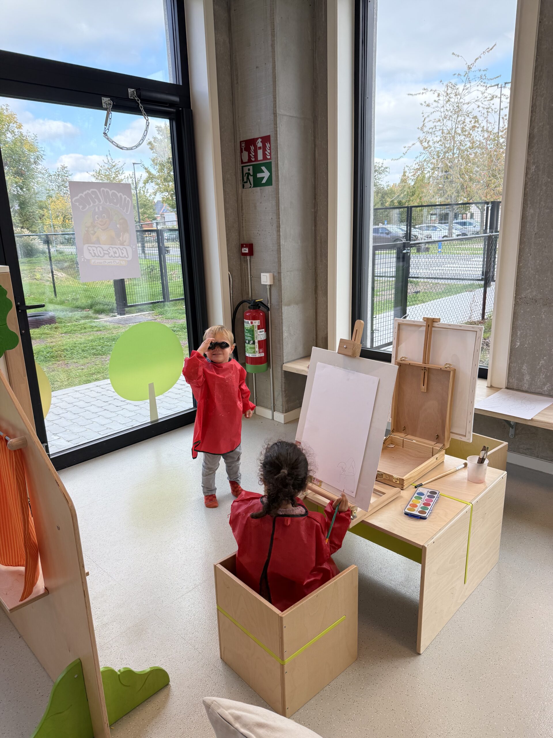 Het afscheid ’s morgens is voor sommigen nog wat moeilijk, en dat is helemaal normaal. Het vraagt tijd om mama of papa even los te laten, maar ik zie dat de kinderen daarna al vlug hun draai vinden in de klas. Ook de speelplaats voelt soms nog wat spannend aan, maar in de klas wordt er al volop gespeeld en vinden de kinderen hun favoriete plekjes.
