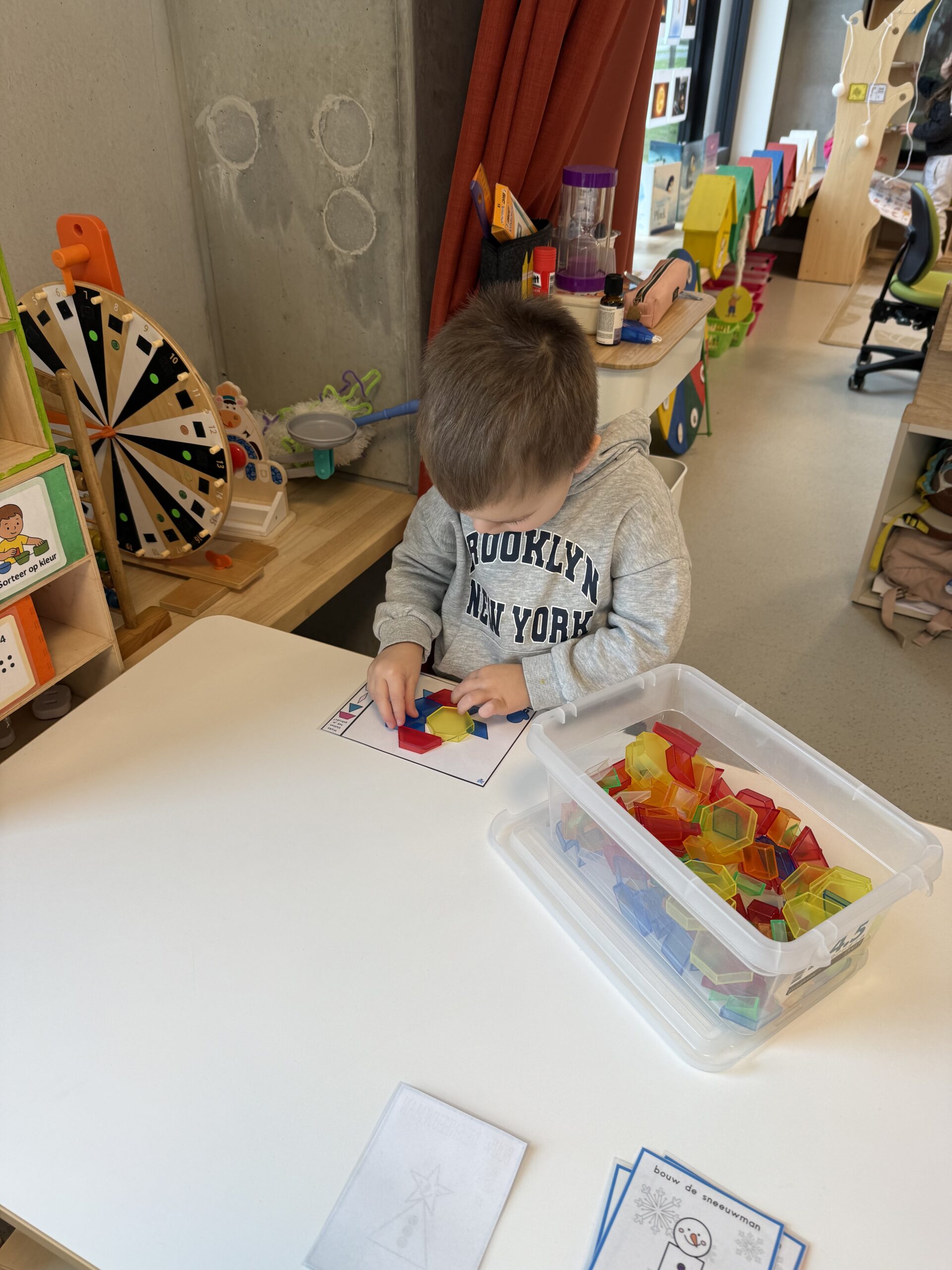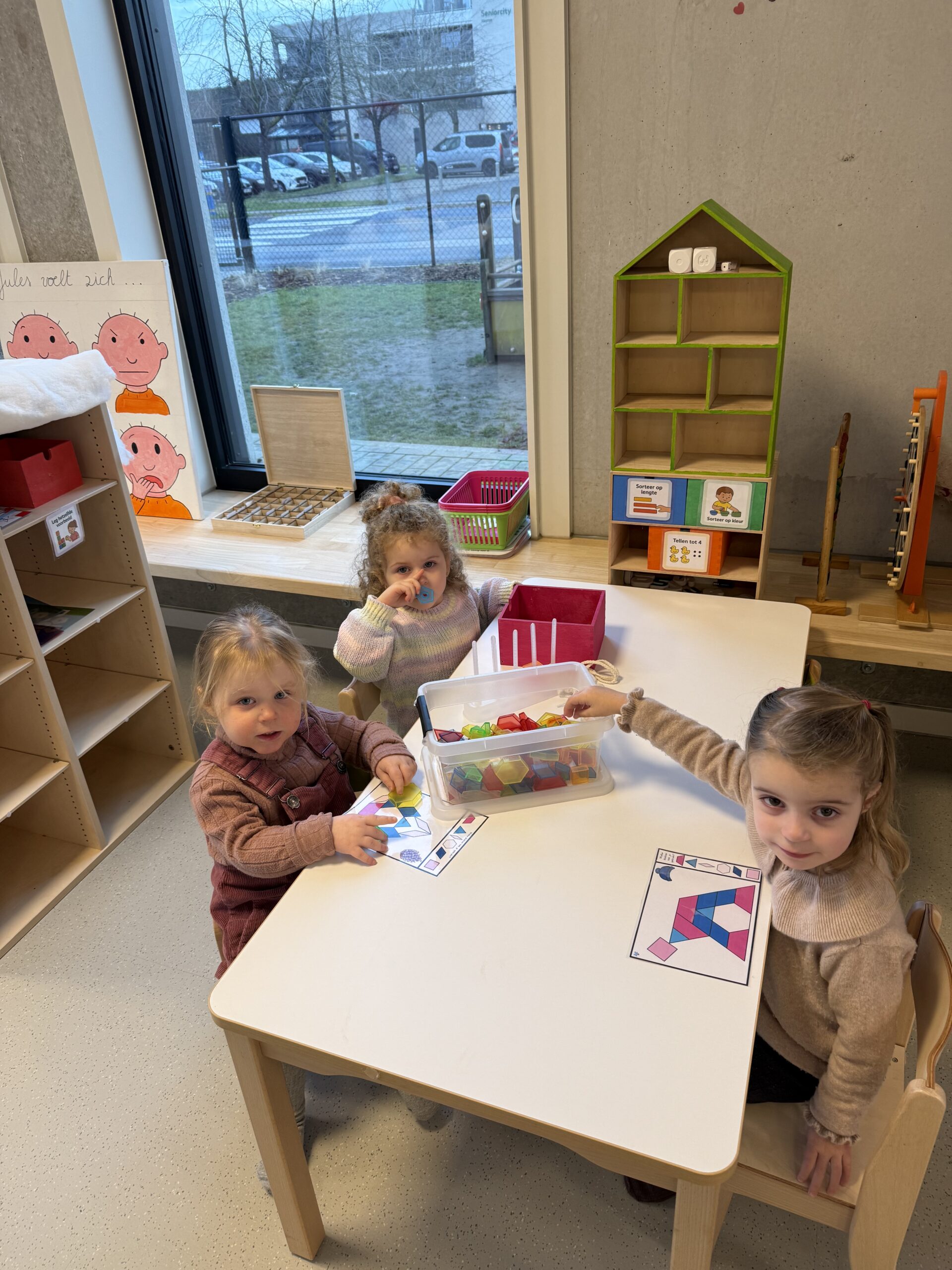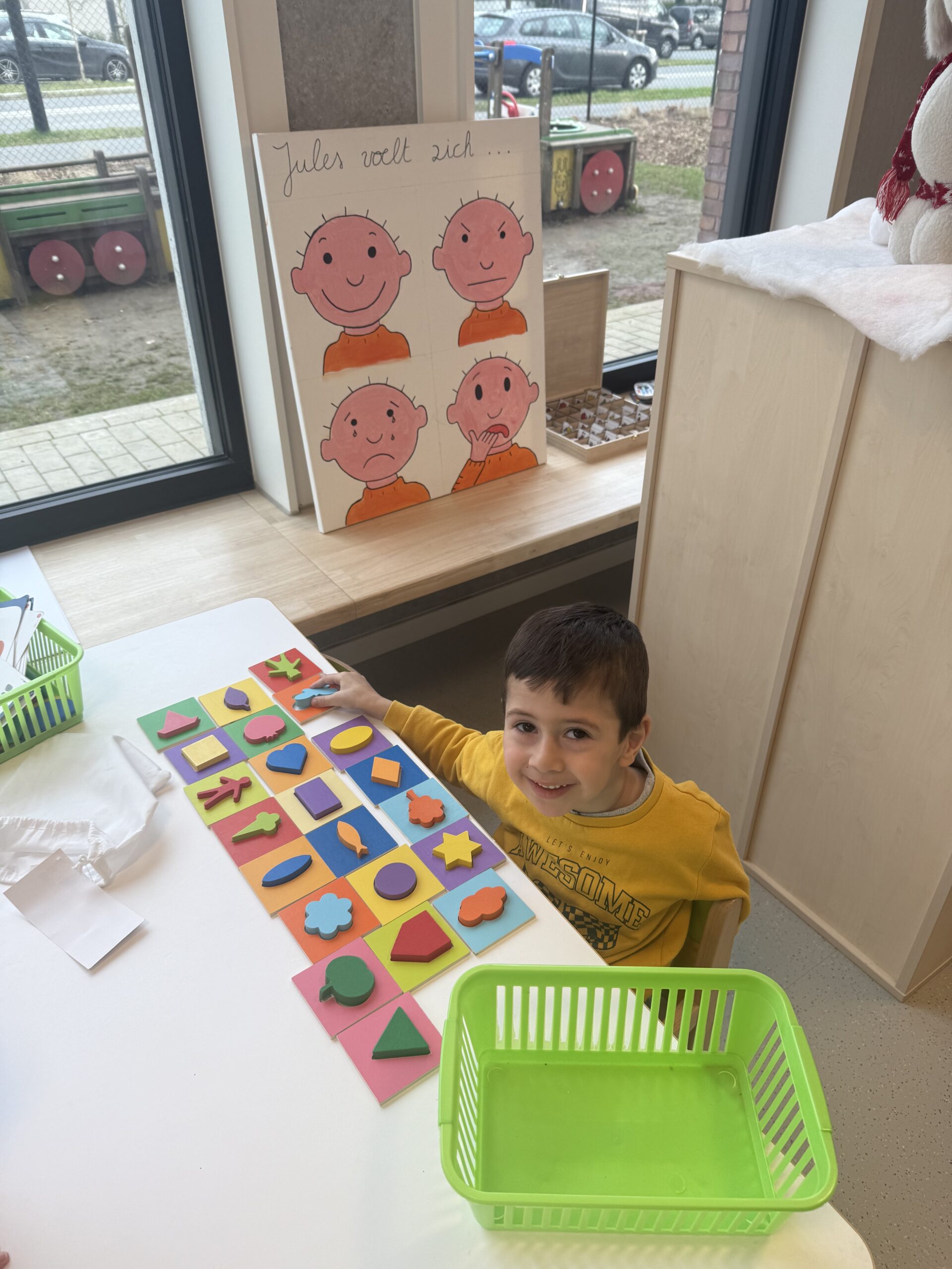 Daarnaast werd er deze week ook weer volop gewerkt rond wiskundige initiatie in de klas. We herhaalden de verschillende vormen en deden hier een zelfstandig werkje rond.